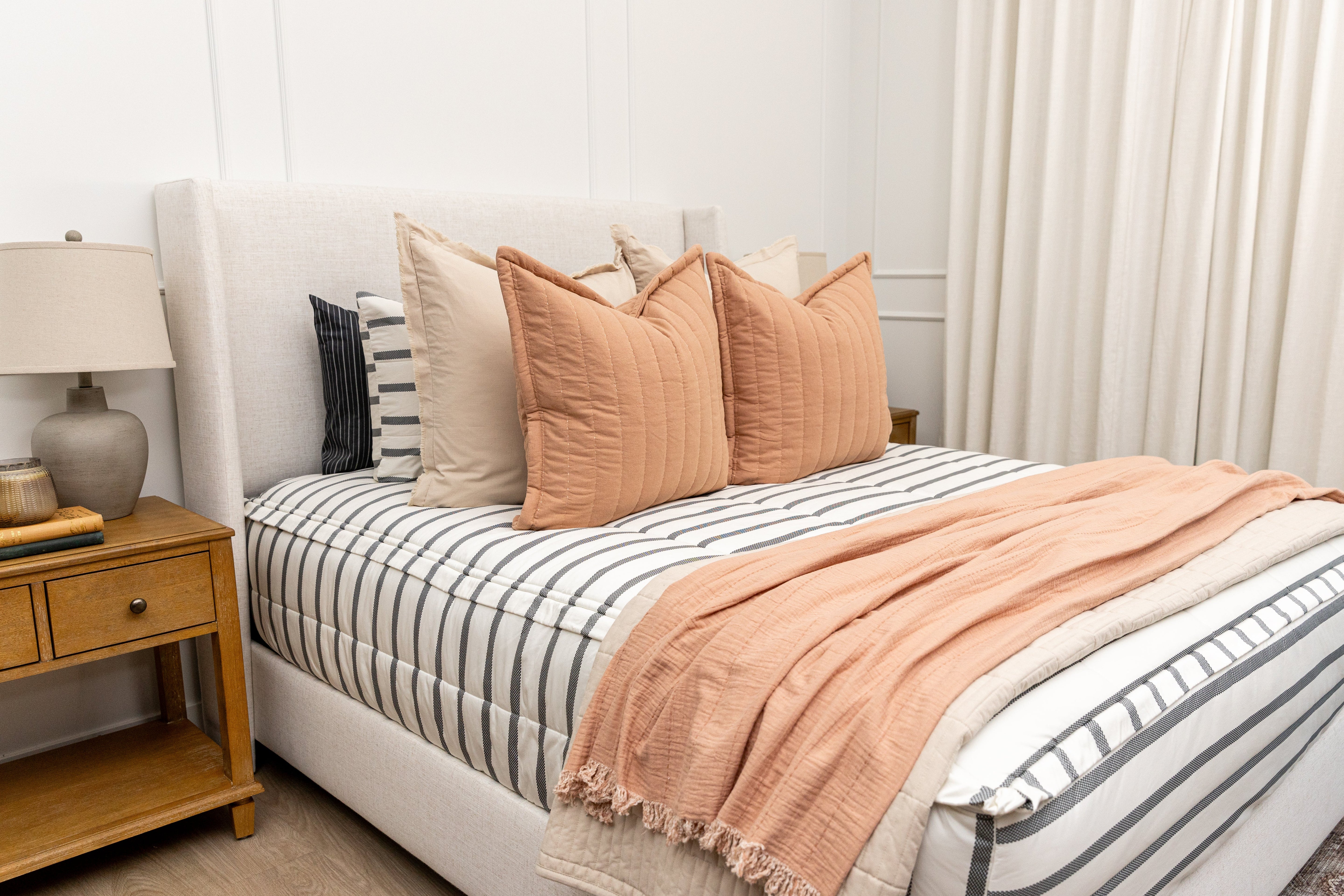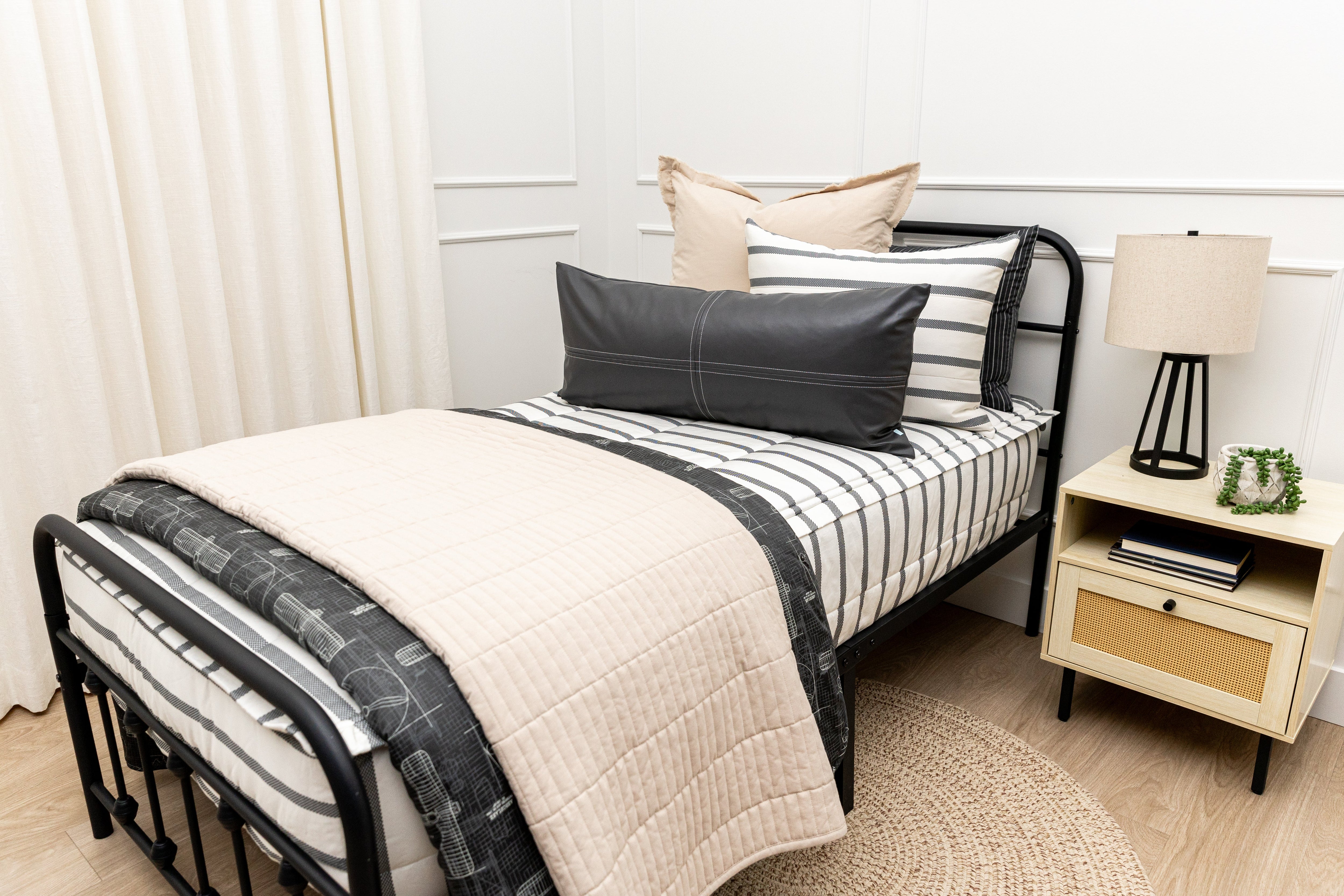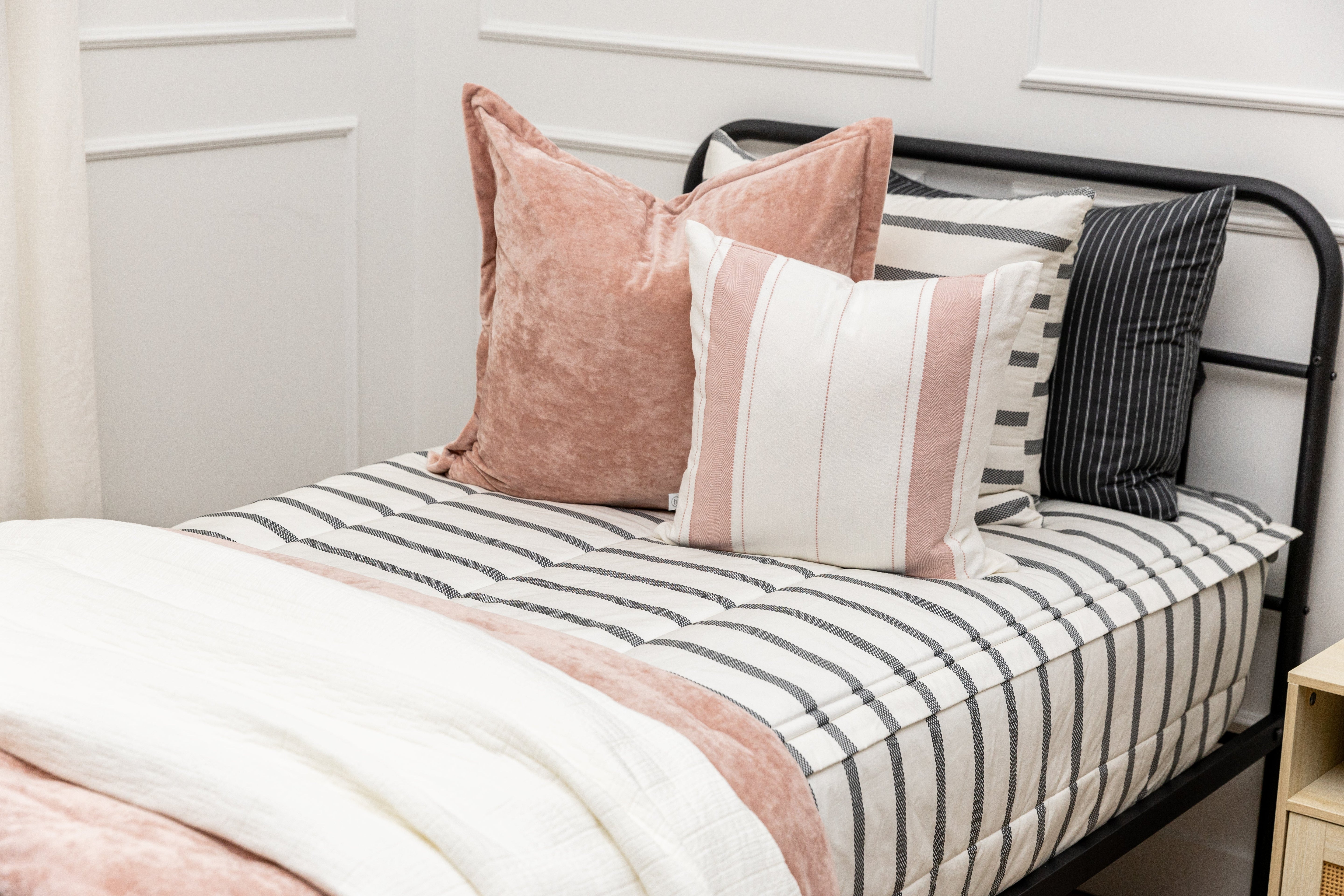 Searching for the perfect striped bedding? Congratulations, you have officially found it! The Chandler Beddy’s combines a classic charcoal stripe detail on a cream base with our ultra-popular zipper design, giving you a timeless look that is easy to style and oh-so comfortable.