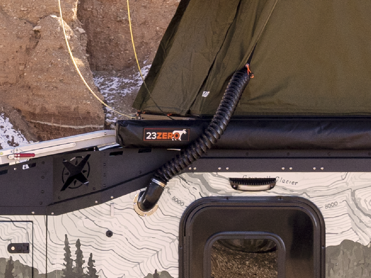 Yes. Every Voyager includes a Tent Heater Port specifically to extend warmth to a rooftop tent or annex. By connecting the port to a heat duct, you can channel warm air from the trailer’s furnace into the tent. This means you (or your kids/guests) can sleep up high under the stars and still stay comfortably warm, even in winter conditions. It’s a game-changer for four-season camping with extended family or friends.