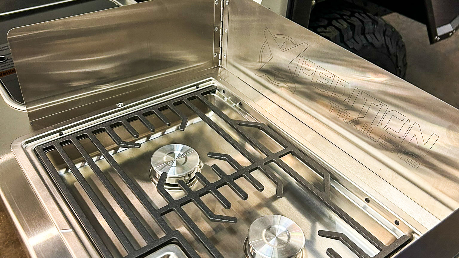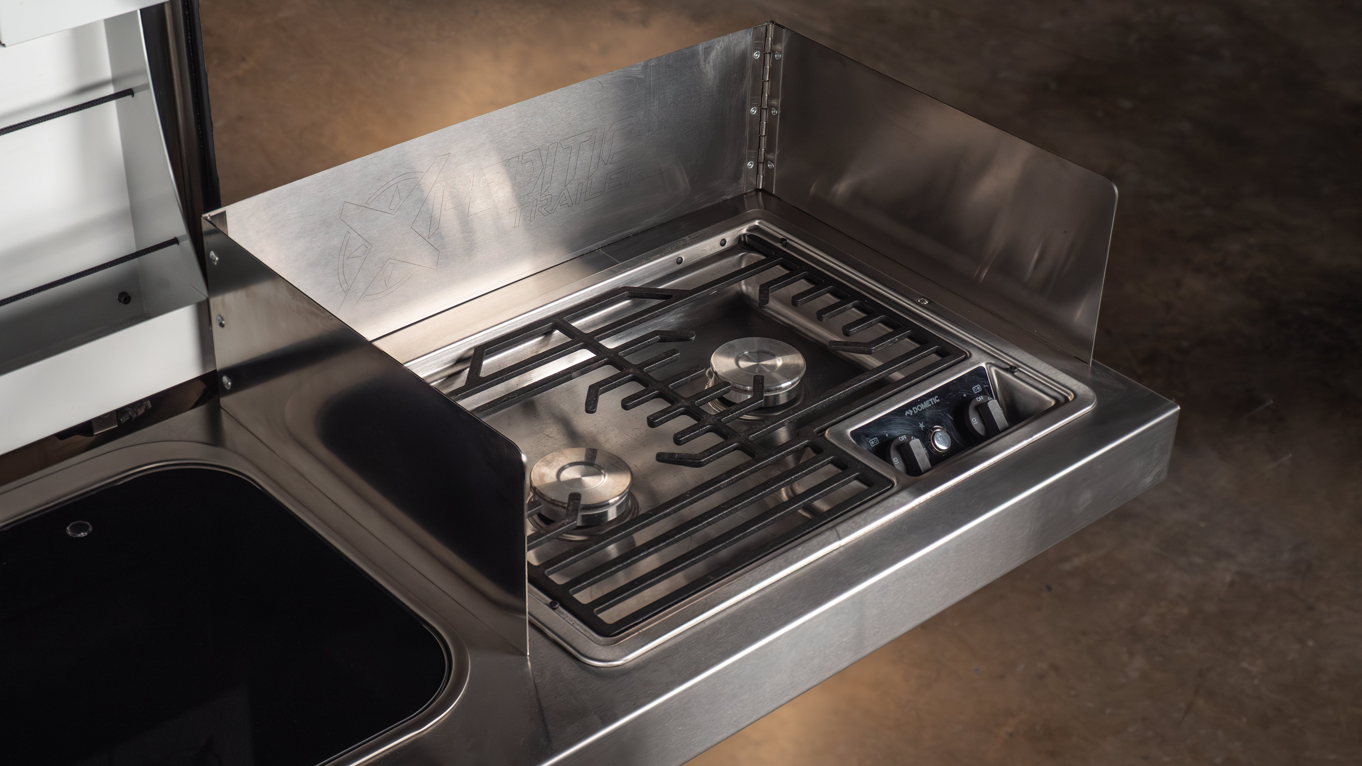 - Dual Slide-Out Kitchen For Optional Cooler And Standard Sink & Cooktop