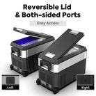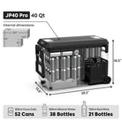 Our JP40 Pros features a dependable SECOP (Danfoss) compressor backed by a 5-year warranty (1 year on other parts), delivering a -4°F to 68°F cooling range for refrigeration or freezing. Dual handles, built-in wheels, and a 40° tilt anti-vibration function provide stable mobility, while the reversible lid opens from either side or fully detaches for easy access. An optional UV lamp sterilizes the interior after 30 minutes of corded use. Measuring 28.5" × 13.8" × 18" and weighing 38.28 lbs, this lightweight design makes it an ideal companion for any adventure.